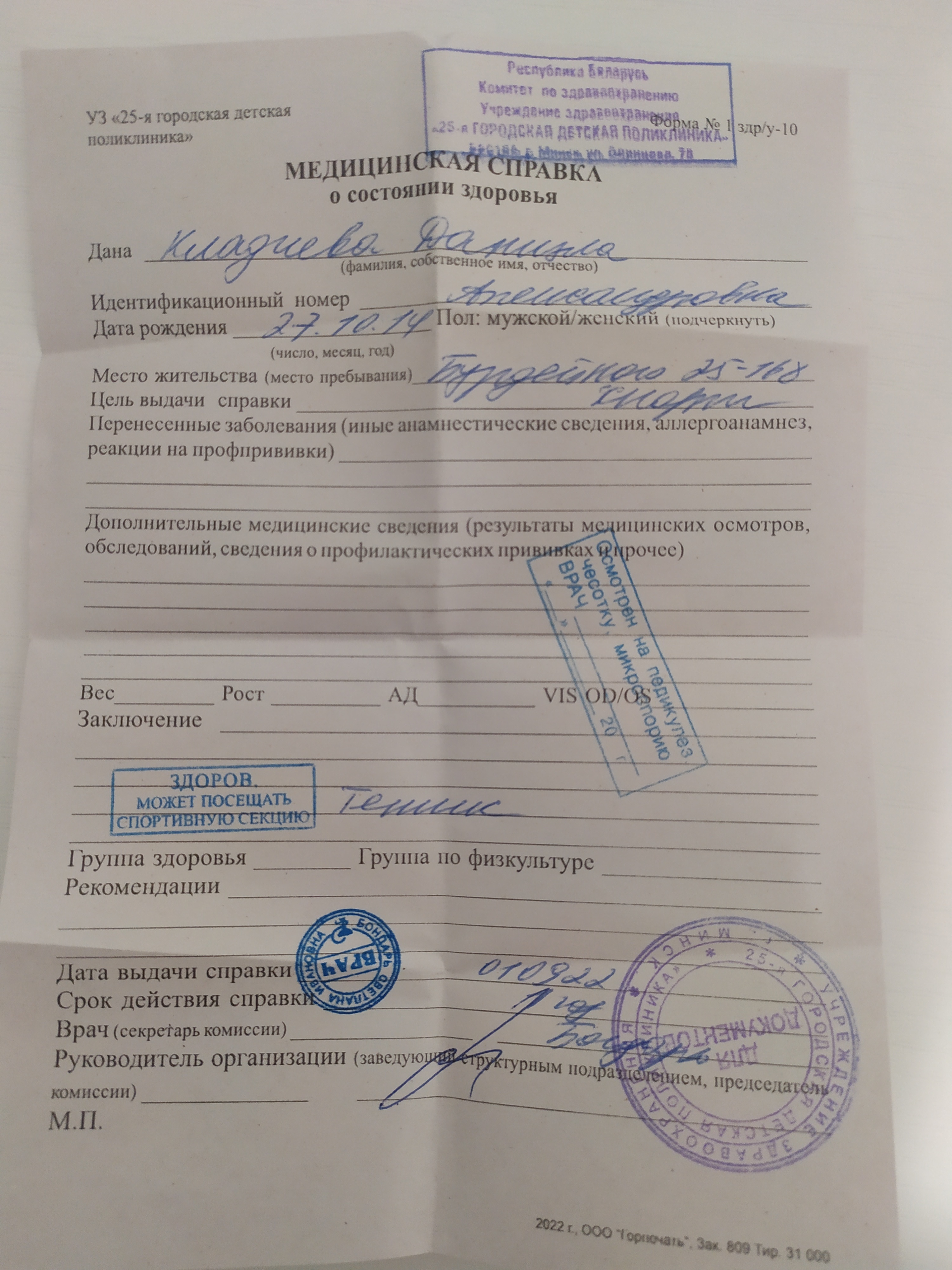| Гетманов Даниил Андреевич | 23.10.2012 | СДЮШОР ППО ОАО Беларуськалий / Красулевич Ангелина Александровна | Принята | |